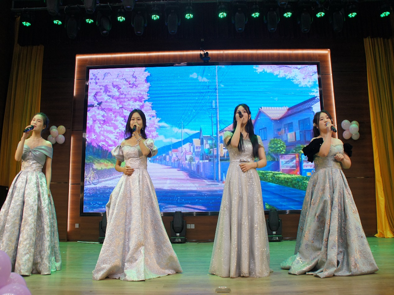 在歌舞欢唱中,我们展望未来,告别旧岁的辛勤与收获,迎接新年的希望与挑战。朗诵《相机上的红丝绳》以深情而激昂的语调,表达了对过往岁月的感慨与怀念,引发了观众强烈的共鸣。赵雪何老师带来的歌曲《如愿》则用歌声传递了对伟大祖国的深情歌颂与美好祝愿,激发了大家的爱国情怀与民族自豪感。随后,舞蹈《党旗飘扬的方向》与走秀《欢迎来到90年代》轮番上演,前者以翩翩起舞的舞姿展现了党的光辉形象与伟大历程,后者则以动感的走秀与复古的服饰带领观众穿越回那个充满激情与梦想的年代。